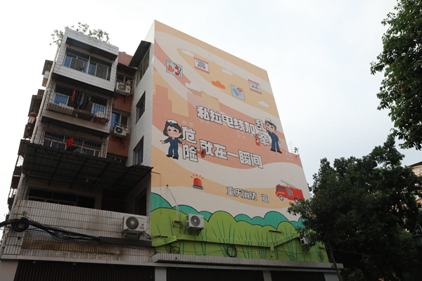 目前,重慶市大足區(qū)已完成文昌路、青年路兩處消防彩繪墻。鮮明的消防安全提示標(biāo)語(yǔ)、與生活密切相關(guān)的消防知識(shí)、生動(dòng)形象的消防漫畫(huà)……形成了一道靚麗的風(fēng)景線。彩繪墻不僅扮靚了環(huán)境,也成為廣大群眾學(xué)習(xí)消防安全知識(shí)的“流動(dòng)課堂”。