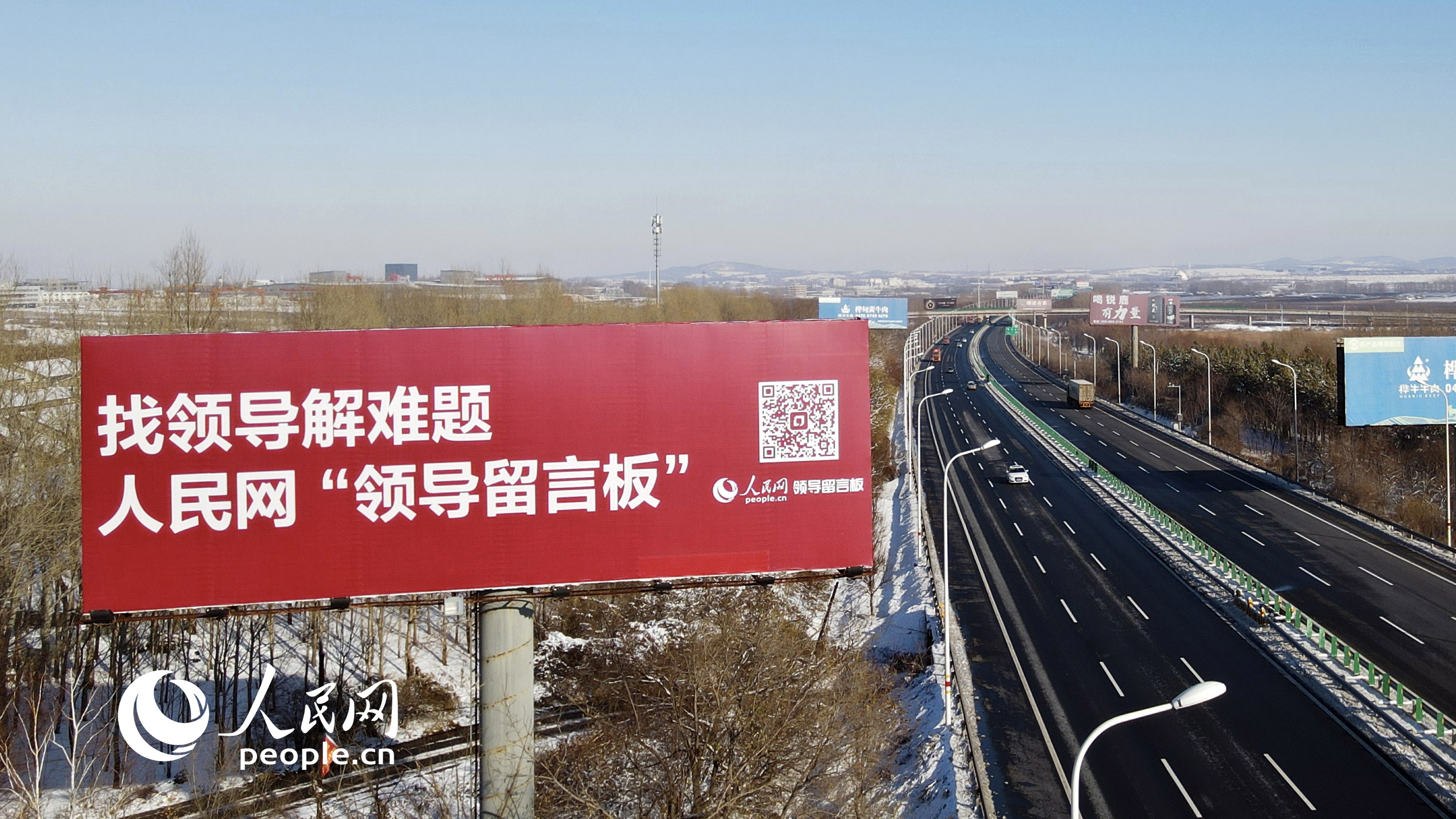 吉林省吉林市G12琿烏高速上橫跨高速的人民網(wǎng)廣告牌。人民網(wǎng) 李成偉攝