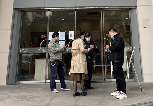 嚴(yán)格檢查落實(shí)客戶到店“口罩、測(cè)溫、查碼、掃碼”四件事。中行重慶市分行供圖