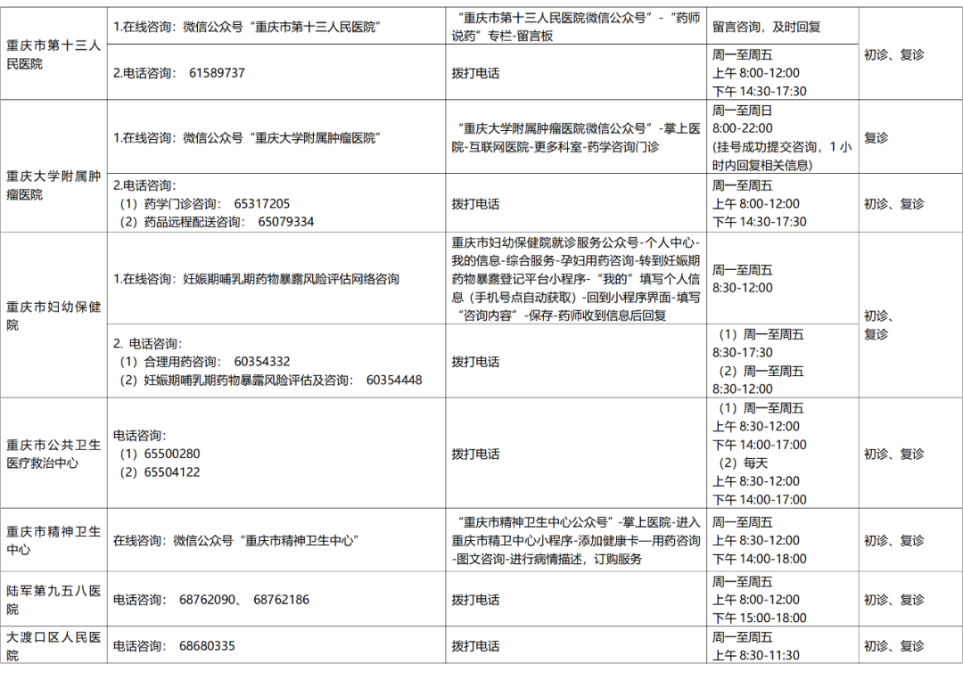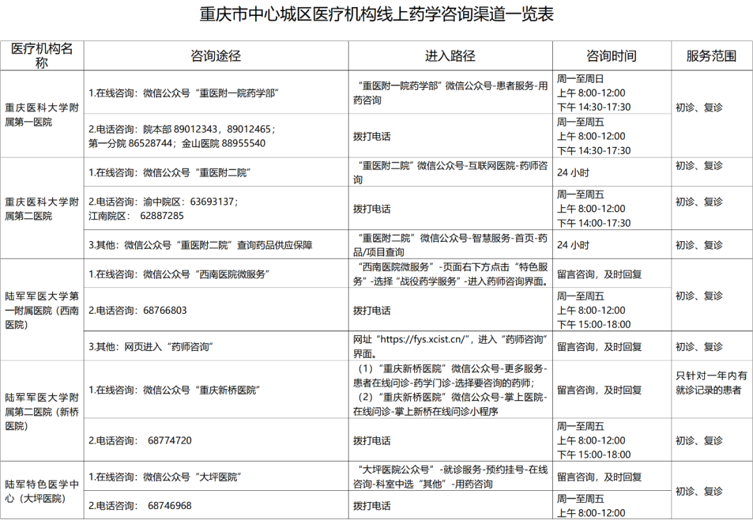 重慶中心城區(qū)27家醫(yī)療機構(gòu)開通線上用藥咨詢服務(wù)