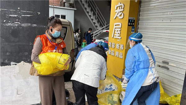 協(xié)會(huì)工作人員在社區(qū)進(jìn)行志愿服務(wù)。重慶市火鍋協(xié)會(huì)供圖