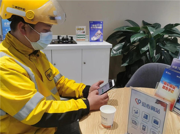 外賣小哥在愛心翼站內(nèi)休息。重慶電信供圖