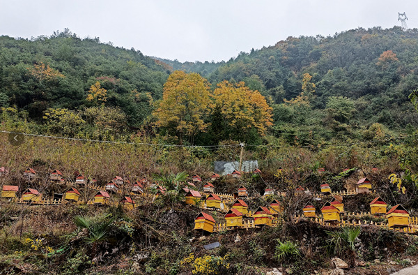 中蜂養(yǎng)殖基地四周山勢(shì)蜿蜒,植被茂密,洋槐、烏泡、五倍子等蜜源植物品種繁多,發(fā)展中蜂產(chǎn)業(yè)具有得天獨(dú)厚的資源優(yōu)勢(shì)。