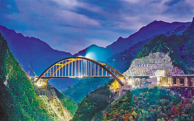 渝湘復(fù)線高速公路方面,位于彭水境內(nèi)的項(xiàng)目新田隧道,左洞也于近日順利貫通;武隆境內(nèi)的雙堡特大橋主拱肋已經(jīng)吊裝完成38節(jié),預(yù)計(jì)明年一季度全橋合龍。