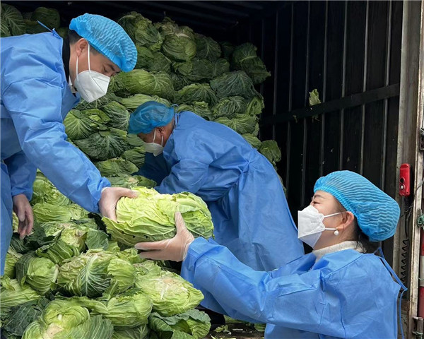 工作人員正在搬運(yùn)愛心企業(yè)捐贈的蔬菜。主辦方供圖