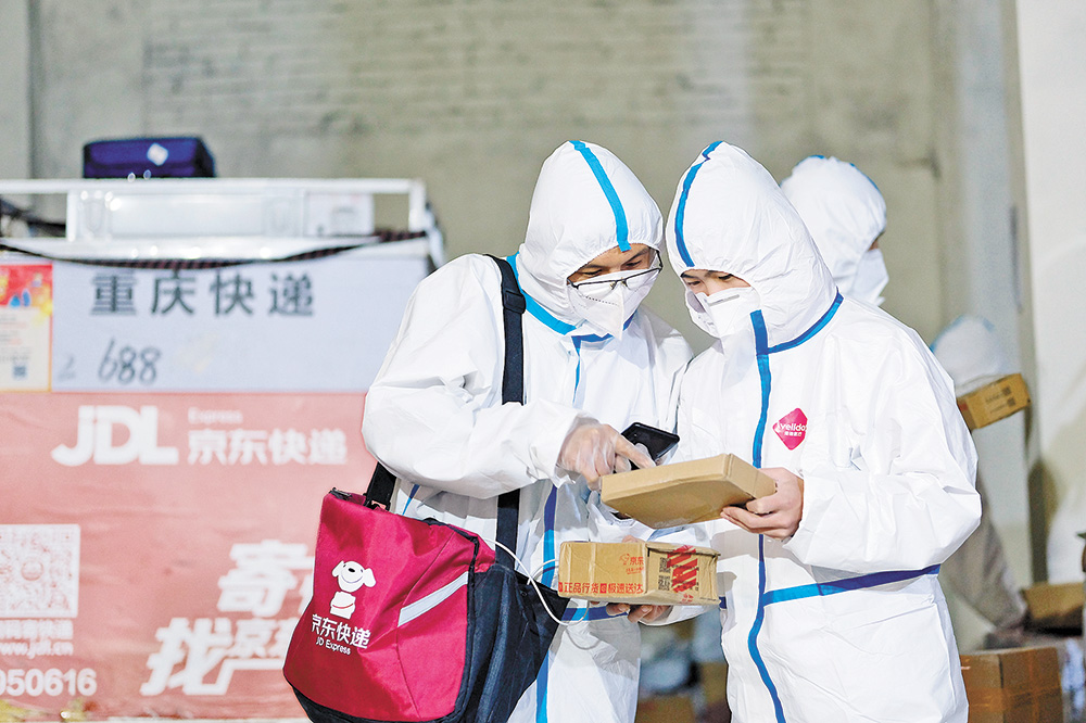 11月30日,京東快遞南岸區(qū)營(yíng)業(yè)部,快遞小哥在臨時(shí)組建的配送站清點(diǎn)快遞,準(zhǔn)備發(fā)車送貨。11月27日,來自四川、貴州、云南的26名快遞小哥到達(dá)重慶南岸,經(jīng)過相關(guān)檢疫后,僅用一天時(shí)間就臨時(shí)組建了一個(gè)配送站,開始當(dāng)?shù)氐乃拓洝?/p>