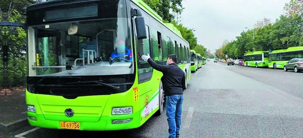 工作人員和司機(jī)正在做發(fā)車前的準(zhǔn)備 據(jù)上游新聞