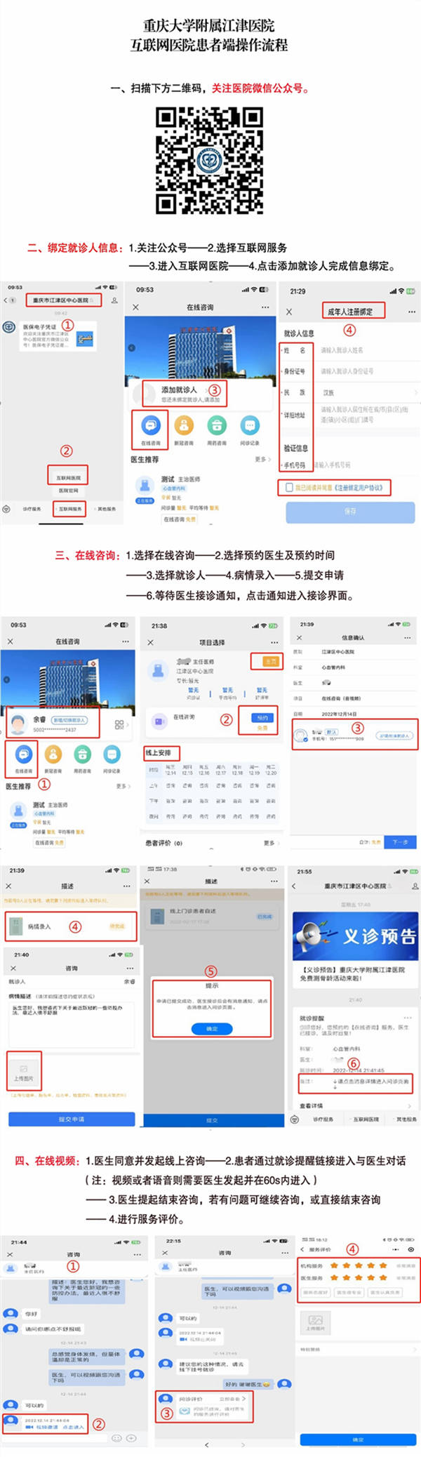 為進一步滿足市民朋友就醫(yī)需要,加強優(yōu)質(zhì)醫(yī)療服務(wù)保障,12月15日,重慶大學(xué)附屬江津醫(yī)院(江津區(qū)中心醫(yī)院)正式開通互聯(lián)網(wǎng)醫(yī)院視頻問診功能。市民只需通過手機,足不出戶就可享受醫(yī)生的咨詢服務(wù)。