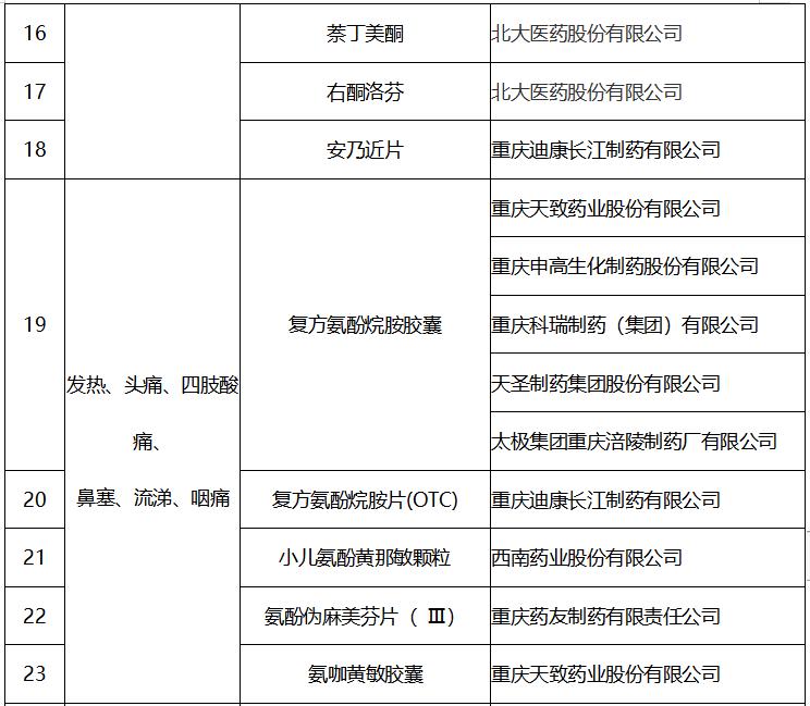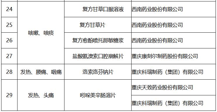 目錄結(jié)合全市重點醫(yī)藥企業(yè)新冠肺炎對癥預(yù)防和治療相關(guān)藥品信息,針對發(fā)熱、頭疼、咳嗽、咽痛等癥狀推薦29個地方化藥品種、48個地方中藥品種。