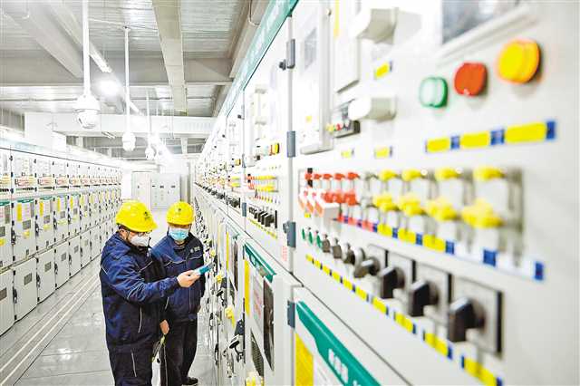 12月24日,工作人員在110千伏雙元智能變電站巡視設(shè)備運行情況。