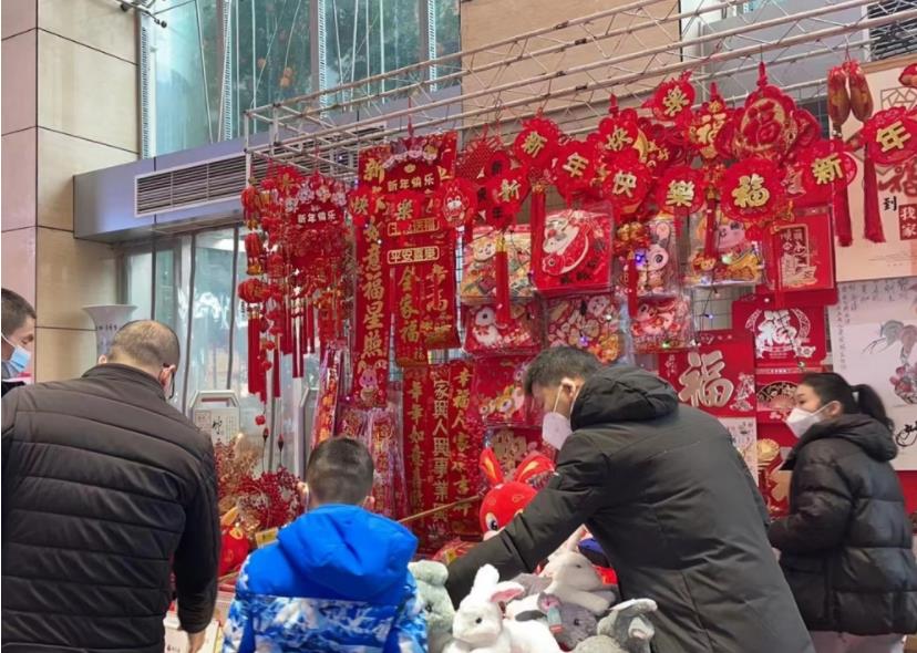 1月2日上午,記者來到重慶書城。步入書城1樓大廳,濃濃的節(jié)日氣息撲面而來。新年裝飾品展臺前,紅紅火火的傳統(tǒng)民俗文化產(chǎn)品吸引了不少市民駐足,精心挑選文化類年貨。