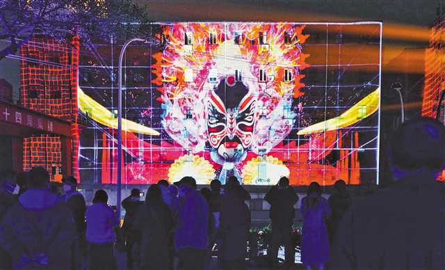 一月五日,九龍坡黃桷坪涂鴉街,中國·重慶首屆國際光影藝術(shù)節(jié)的燈光秀吸引了眾多市民前往觀看。本欄圖片均由記者崔力、鄭宇攝\視覺重慶