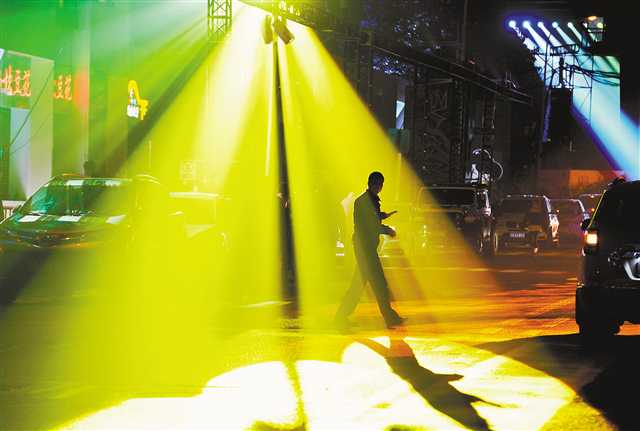 光影藝術(shù)節(jié)的燈光將街道裝扮得五光十色。