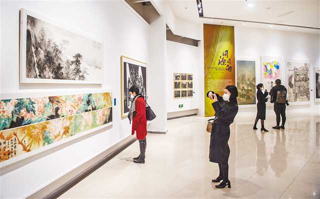 一月六日,重慶當代美術館,“同源·同向——長江流域十三省市自治區(qū)美術作品邀請展”開幕,市民前來參觀。記者 鄭宇 攝\視覺重慶