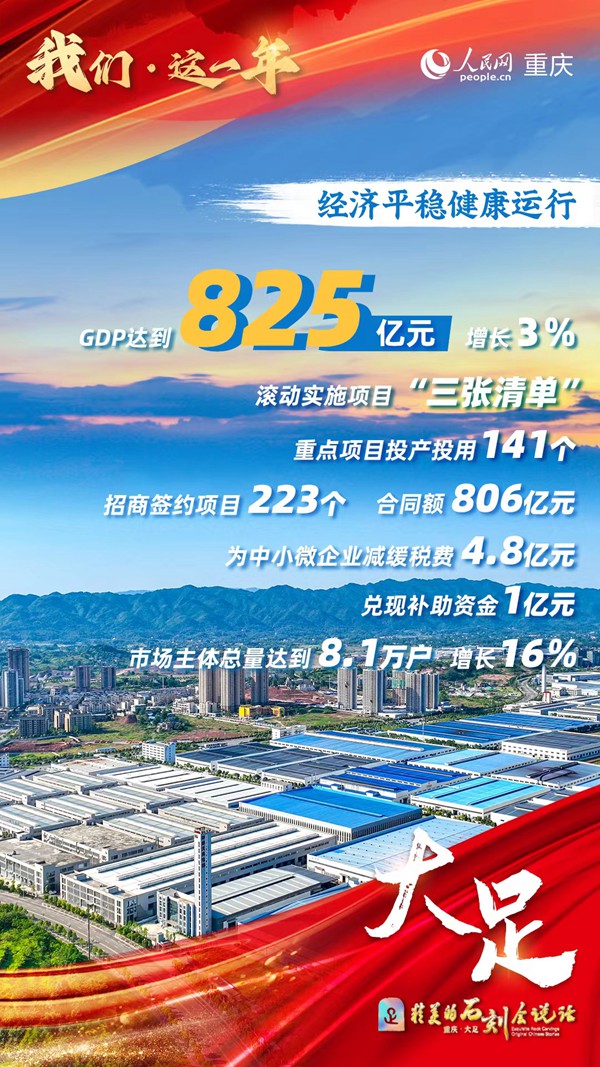 人民網(wǎng)重慶1月15日電 在今年的重慶市六屆人大一次會(huì)議上,市政府工作報(bào)告提出,成渝地區(qū)雙城經(jīng)濟(jì)圈建設(shè)成勢(shì)見效,川渝兩地滾動(dòng)實(shí)施三批次重大合作項(xiàng)目、完成投資3916億元,311項(xiàng)“川渝通辦”事項(xiàng)落地見效。這不僅是成都與重慶兩座千萬級(jí)城市之間的攜手共贏,更讓“圈”中的一些區(qū)(市、縣)嘗到了甜頭,特別是重慶的橋頭堡城市之一——大足區(qū)。