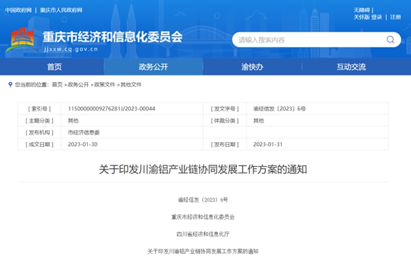 - 川渝出臺(tái)鋁產(chǎn)業(yè)鏈協(xié)同發(fā)展方案