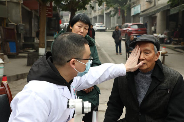 62歲的刁大叔最近感覺(jué)視物模糊感加重,義診現(xiàn)場(chǎng),眼科主任唐崑源為其做簡(jiǎn)單檢查,隨后向他介紹白內(nèi)障手術(shù)的過(guò)程和效果,邀他入院進(jìn)行進(jìn)一步檢查。