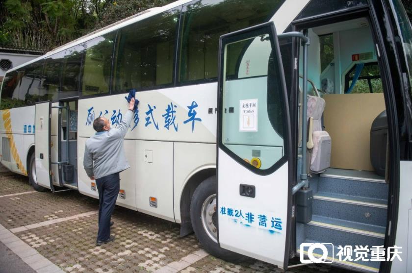 2月19日,渝中區(qū)佛圖關(guān)公園,工人師傅正在清潔移動公廁。記者 崔力 攝/視覺重慶