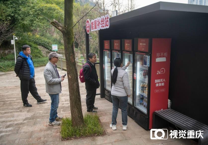 2月16日,渝中區(qū)佛圖關(guān)公園,市民在“能量補(bǔ)給站”買水。記者 崔力 攝/視覺重慶