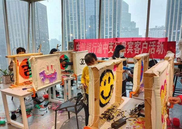 舉辦“DIY地毯”活動。中信銀行重慶分行供圖