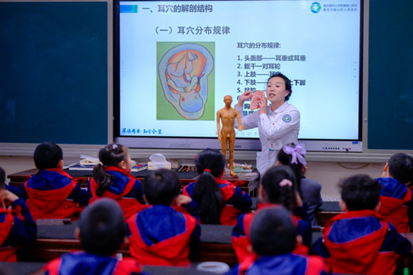 在御湖小學(xué),該院中醫(yī)科護(hù)理負(fù)責(zé)人胡曉麗給孩子們帶來(lái)一堂趣味十足的“小小耳朵大智慧”小課堂,科普耳穴常識(shí),講解神奇功效,小朋友們聚精會(huì)神地聽課,并踴躍提問(wèn),課堂氣氛活躍、互動(dòng)頻頻。隨后,醫(yī)護(hù)人員為小朋友們帶來(lái)中醫(yī)耳穴壓豆法體驗(yàn)活動(dòng),通過(guò)對(duì)眼耳穴進(jìn)行揉捏按壓,有效緩解眼睛疲勞,使小朋友深切感受中醫(yī)藥技術(shù)的獨(dú)特魅力與價(jià)值。(胡悅建、張瀚月)