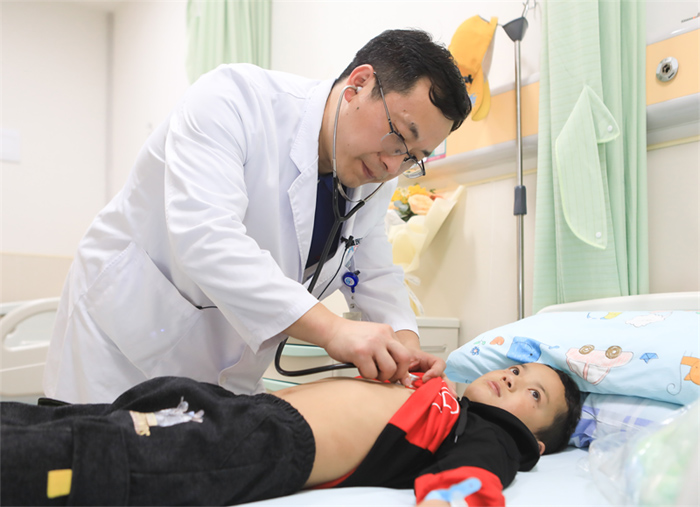 重醫(yī)附屬兒童醫(yī)院胸心外科副主任李洪波為患兒檢查。白楊攝
