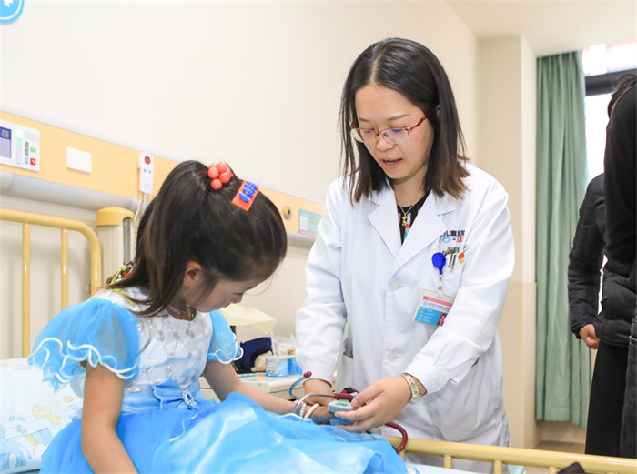重醫(yī)附屬兒童醫(yī)院心血管科主治醫(yī)師程真莉為患兒檢查。白楊攝