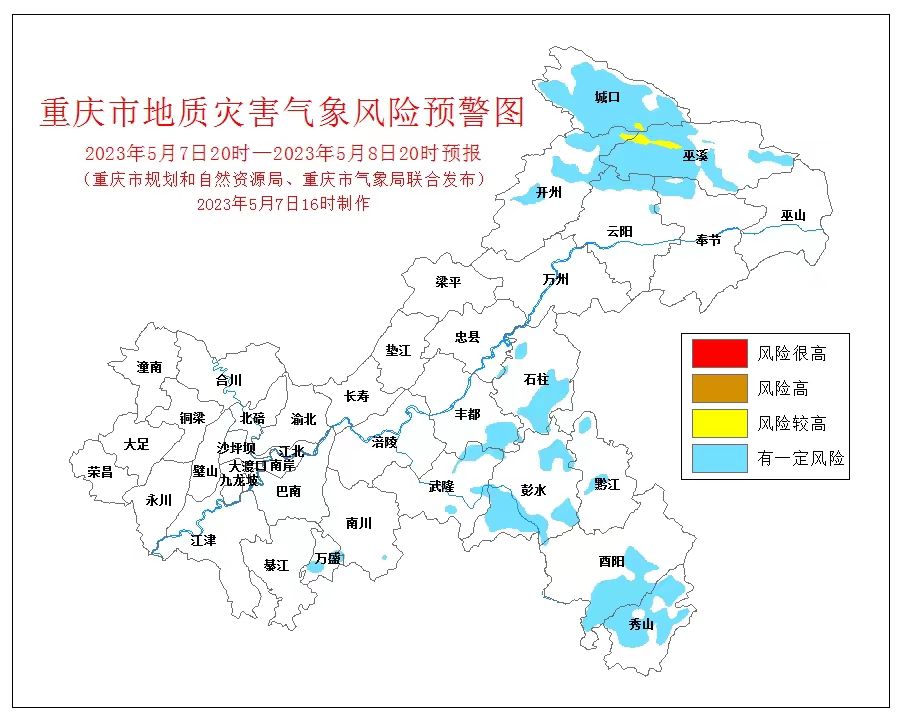 5月7日16時,重慶市規(guī)劃和自然資源局、重慶市氣象局聯(lián)合發(fā)布全市地質(zhì)災害氣象風險預警。