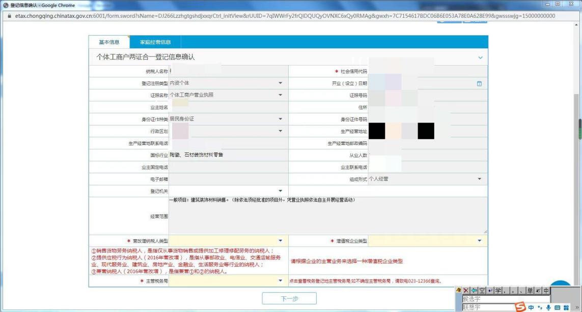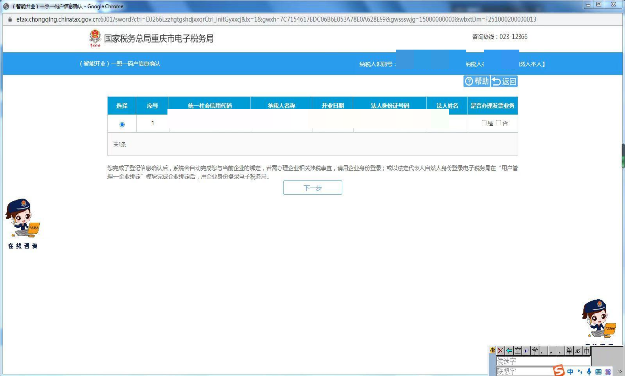 第二步:選擇需要辦理的納稅人,勾選【是否辦理發(fā)票業(yè)務(wù)】,然后點(diǎn)擊【下一步】。