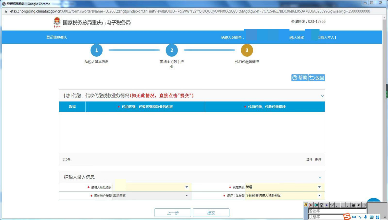 第三步:系統(tǒng)會(huì)自動(dòng)帶入大部分?jǐn)?shù)據(jù),您只需核對(duì)后填寫少部分必填信息即可,然后點(diǎn)擊【提交】。