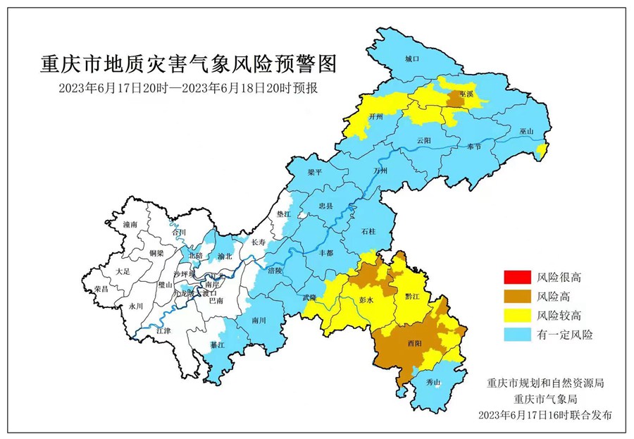6月17日16時,重慶市規(guī)劃和自然資源局、重慶市氣象局聯(lián)合發(fā)布全市地質(zhì)災(zāi)害氣象風(fēng)險預(yù)警。