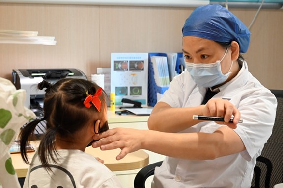 李全蘭為孩子檢查眼睛。重慶愛爾眼科醫(yī)院總院供圖