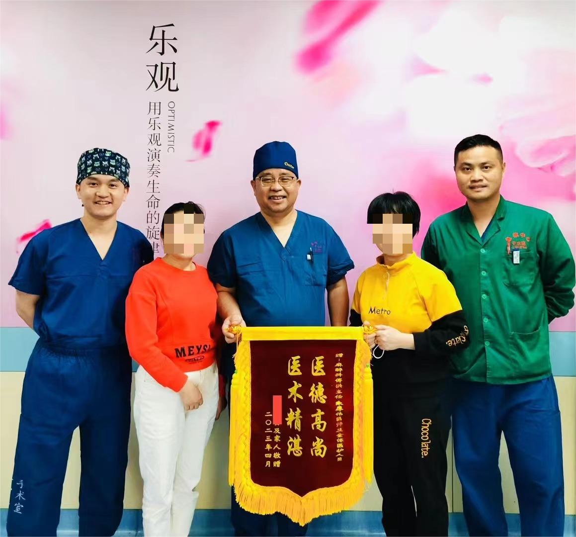 患者家屬送錦旗致謝手術(shù)麻醉科團(tuán)隊(duì)。院方供圖