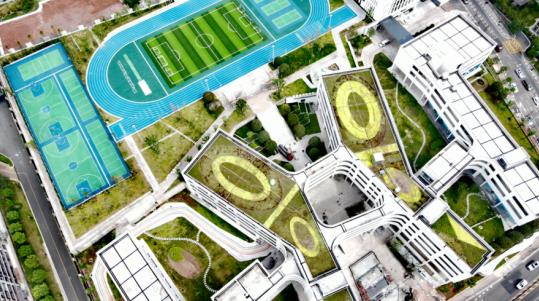 廣陽灣珊瑚中學(xué)辦學(xué)規(guī)模為60個教學(xué)班,其中高中36個教學(xué)班,初中24個教學(xué)班,可提供學(xué)位3000個。學(xué)校占地面積為95畝,總建筑面積為99874平方米。學(xué)校設(shè)計充分利用地形高差,整體成環(huán)形一體化修建,體現(xiàn)了重慶3D魔幻的建設(shè)特征。