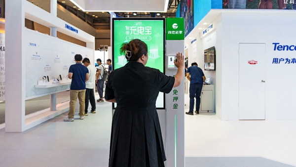 2023智博會騰訊展區(qū)“微信刷掌”租借充電寶用戶體驗(yàn)現(xiàn)場。騰訊供圖