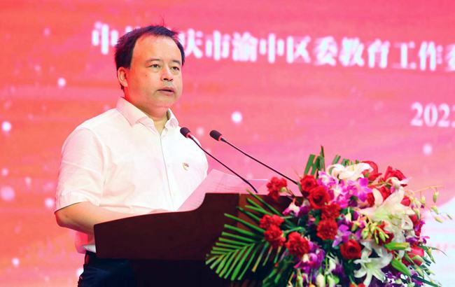 渝中區(qū)委教育工委書記、區(qū)教委主任肖方明致辭。渝中區(qū)教委供圖