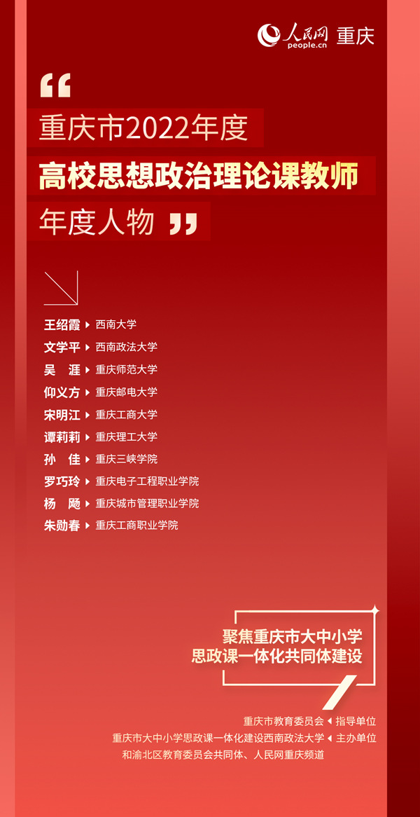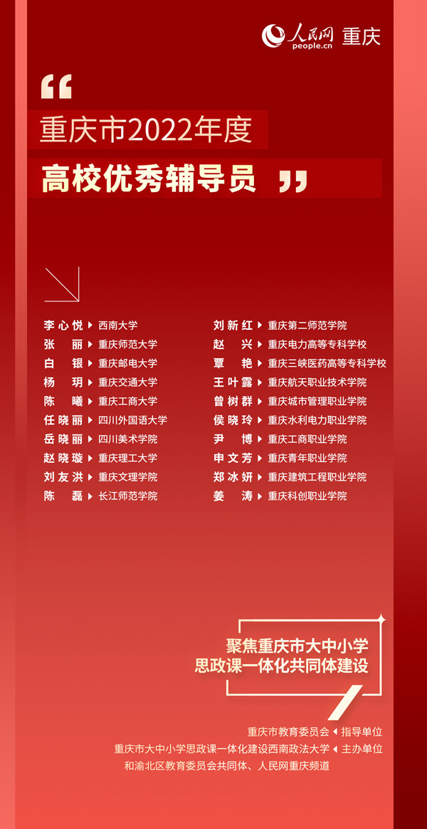 2022年度重慶高校思想政治工作“年度人物”名單出爐
