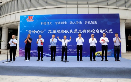 “雷鋒的士”志愿服務(wù)隊隊員免費體檢啟動儀式(最右:肖華)。愛康集團重慶分公司供圖