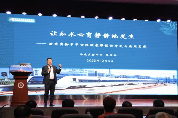 渝北區(qū)實(shí)驗(yàn)中學(xué)校黨委書記、校長陳后林作分享。渝北區(qū)教委供圖
