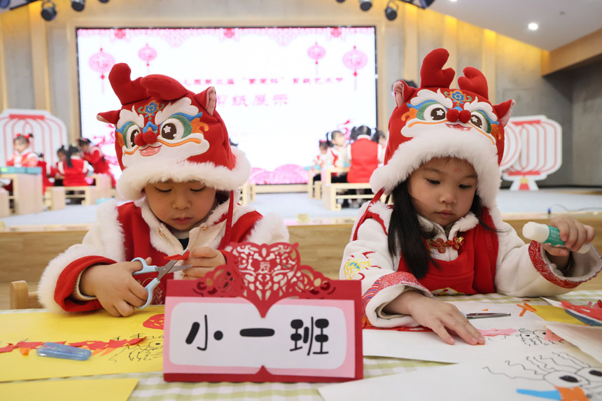 非遺藝術(shù)指尖傳承 萌娃剪紙喜迎龍年