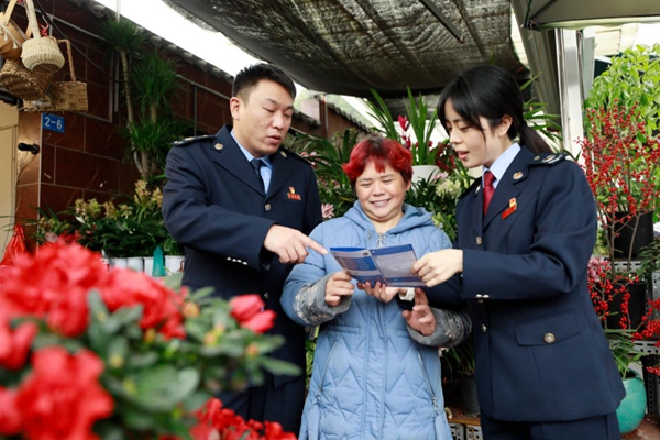 近日,南岸區(qū)稅務(wù)人員走進(jìn)南湖路花市,講解個(gè)體工商戶相關(guān)稅費(fèi)優(yōu)惠政策,解答涉稅問題。蔣宜非攝