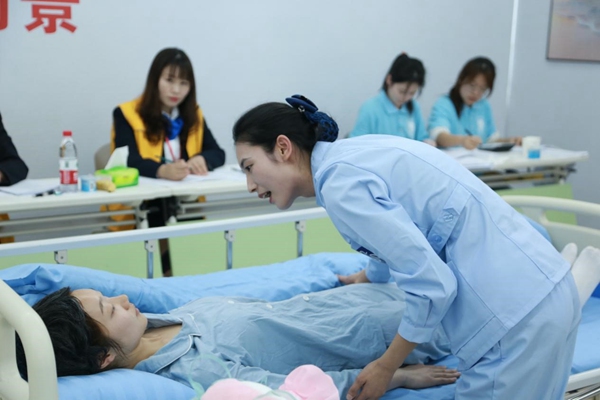 “左奶奶您好,我是社區(qū)養(yǎng)老護(hù)理員小張,受您女兒委托……”在養(yǎng)老護(hù)理員比賽現(xiàn)場(chǎng),賽場(chǎng)還原了“居家”“社區(qū)”“機(jī)構(gòu)”三類養(yǎng)老方式的真實(shí)場(chǎng)景,每個(gè)場(chǎng)景中都有經(jīng)過專業(yè)培訓(xùn)的“標(biāo)準(zhǔn)化老人”等待著選手的照護(hù)。選手需要根據(jù)不同場(chǎng)景和不同案例需要,切換自身角色,在規(guī)定時(shí)間內(nèi)給予老人個(gè)性化照護(hù)。