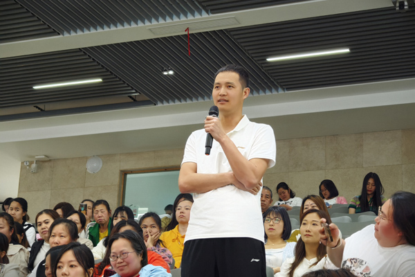在學(xué)校多功能廳內(nèi)座無虛席,300多名前來聽取讀書經(jīng)驗(yàn)分享的家長翹首以盼。12名家長代表和6名教師代表依次上臺,圍繞本學(xué)期全校共讀的《心教》一書,暢談讀書心得。四年級二班周放同學(xué)的家長在臺上談到:“教育不僅是發(fā)展能力,更要關(guān)注心靈。要用心去傾聽孩子的聲音,感受他們的喜怒哀樂,成為他們心靈成長的陪伴者?!苯處煷?xiàng)盥鼊t分享了自己在書中讀到的如何用薩提亞模式喚醒孩子的內(nèi)驅(qū)力。