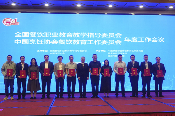 為餐飲職業(yè)教育“突出貢獻(xiàn)”單位代表頒獎(jiǎng)。重慶商務(wù)職業(yè)學(xué)院供圖