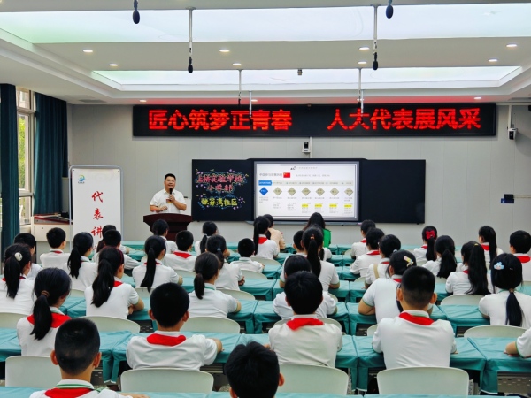 在“六一”兒童節(jié)來臨之際,沙坪壩區(qū)新橋街道“代表講堂”走進(jìn)上橋?qū)嶒瀸W(xué)校(小學(xué)部),世界技能大賽電子技術(shù)項目金牌獲得者、沙坪壩區(qū)人大代表、重慶鐵路運(yùn)輸技師學(xué)院教師梁攀,通過分享自己的成長經(jīng)歷為孩子們送上一份特別的節(jié)日禮物。