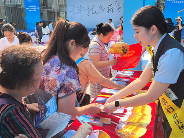 為市民發(fā)放宣傳折頁。建行重慶市分行供圖