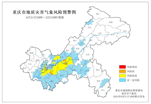 6月21日16時,重慶市規(guī)劃和自然資源局、重慶市氣象局聯(lián)合發(fā)布全市地質(zhì)災(zāi)害氣象風(fēng)險預(yù)警。