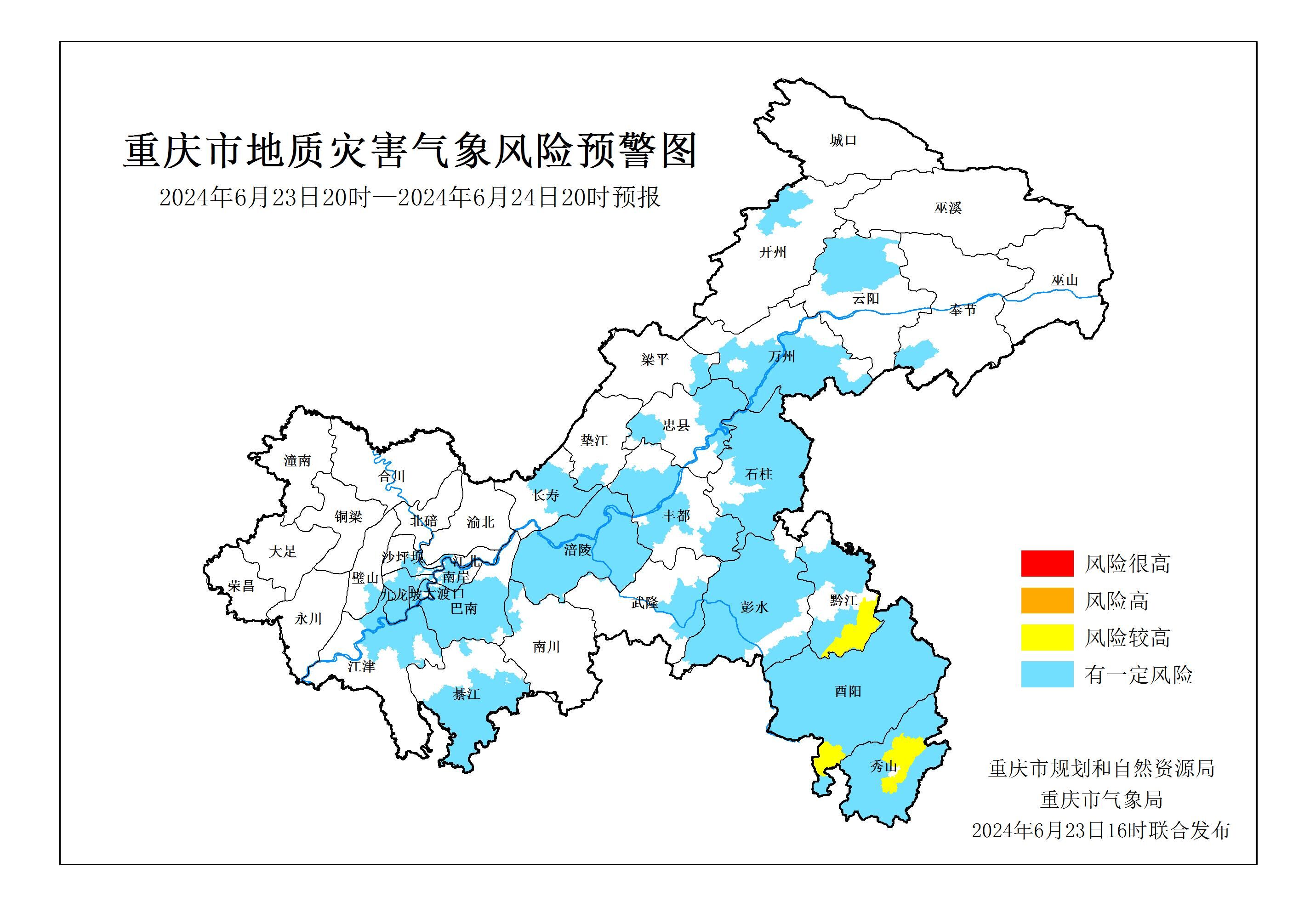 6月23日16時(shí),重慶市規(guī)劃和自然資源局、重慶市氣象局聯(lián)合發(fā)布全市地質(zhì)災(zāi)害氣象風(fēng)險(xiǎn)預(yù)警。