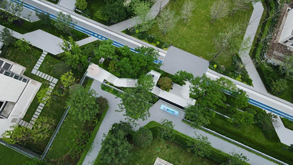 中心區(qū)域規(guī)劃打造了約1500平方米的開闊陽(yáng)光草坪,周圍環(huán)繞著烏桕林、藍(lán)花楹林、銀杏林和水杉林。