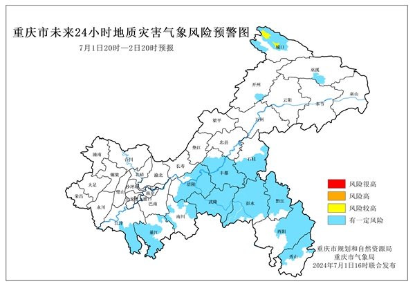 7月1日16時(shí),重慶市規(guī)劃和自然資源局、重慶市氣象局聯(lián)合發(fā)布全市地質(zhì)災(zāi)害氣象風(fēng)險(xiǎn)預(yù)警。